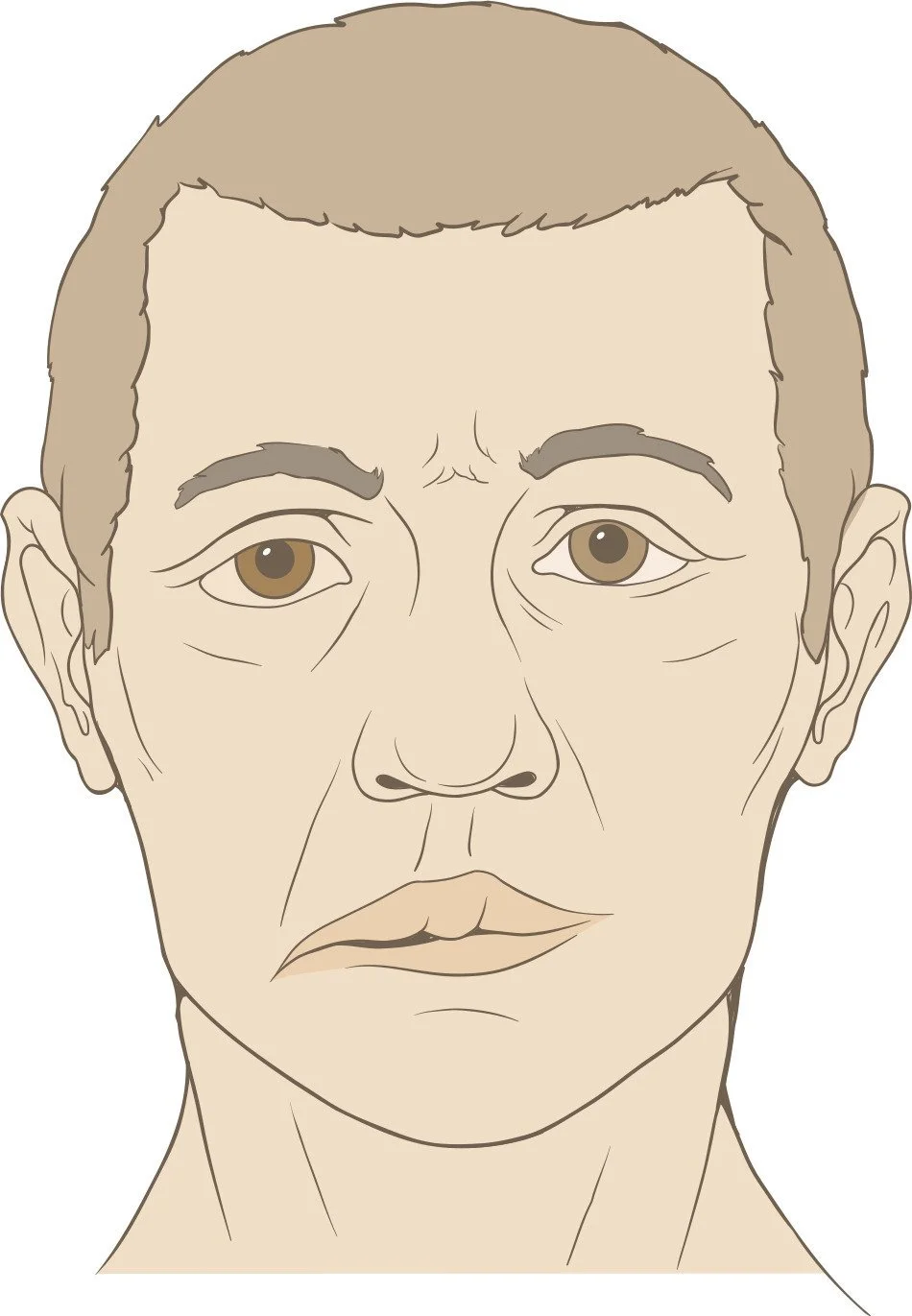 Deeper nasolabial fold (the crease that runs from the side of the nose to the side of the mouth) on the affected side